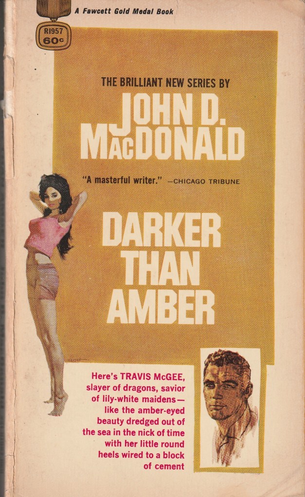 Here are a brace of bangers from the legendary crime writer John D Macdonald here: The Deep Blue Good-By (1964) and Darker Than Amber (1966). The former is the first in the long-running series of novels starring freelance Florida-based investigator Travis McGee, who resides on a large boat and picks up cases of stolen property that interest him for a few dollars a pop (50 per cent of the total value). Both covers shown here are the original Fawcett paperback editions, and exhibit a cool mid-sixties charm that goes well with the sleek action narratives of the novels themselves. ‘Fun fact’: Travis McGee is the model for Sonny Crockett in Michael Mann’s legendary ’80s series Miami Vice. Check out the covers below and you’ll see what I mean.